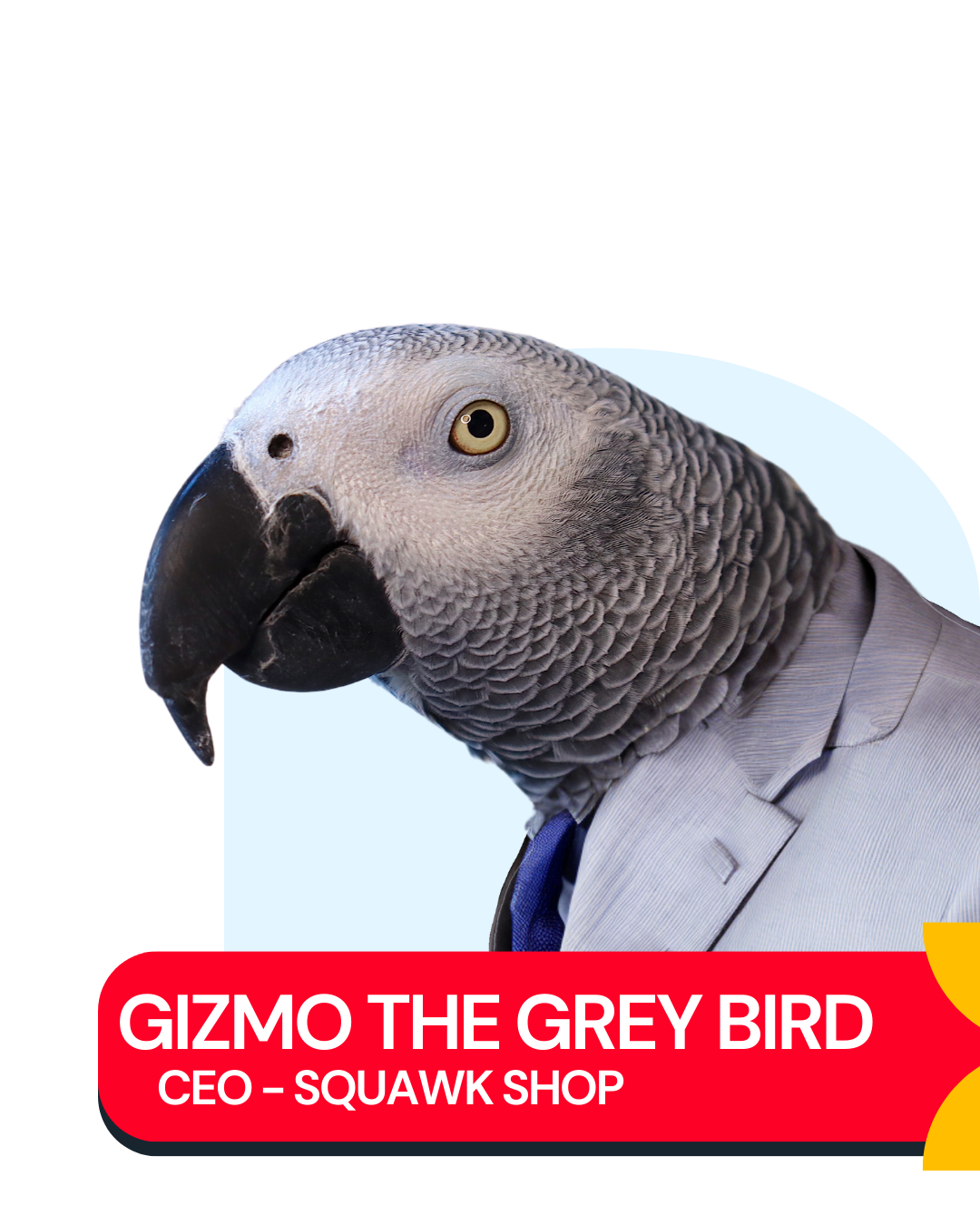 Squawk Shop isn’t just a store—it’s a bird-loving community led by our very own Gizmo the Grey Bird! Gizmo’s mission? To make sure birds everywhere get access to the best, most engaging, and safest toys and accessories. Every product we offer is bird-approved and selected with love to ensure the happiness and enrichment of your feathered companions.